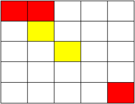 第一行包含两个正整数 m, n,以一个空格分开,分别代表棋盘的大小,棋盘上有颜色的格子的数量。